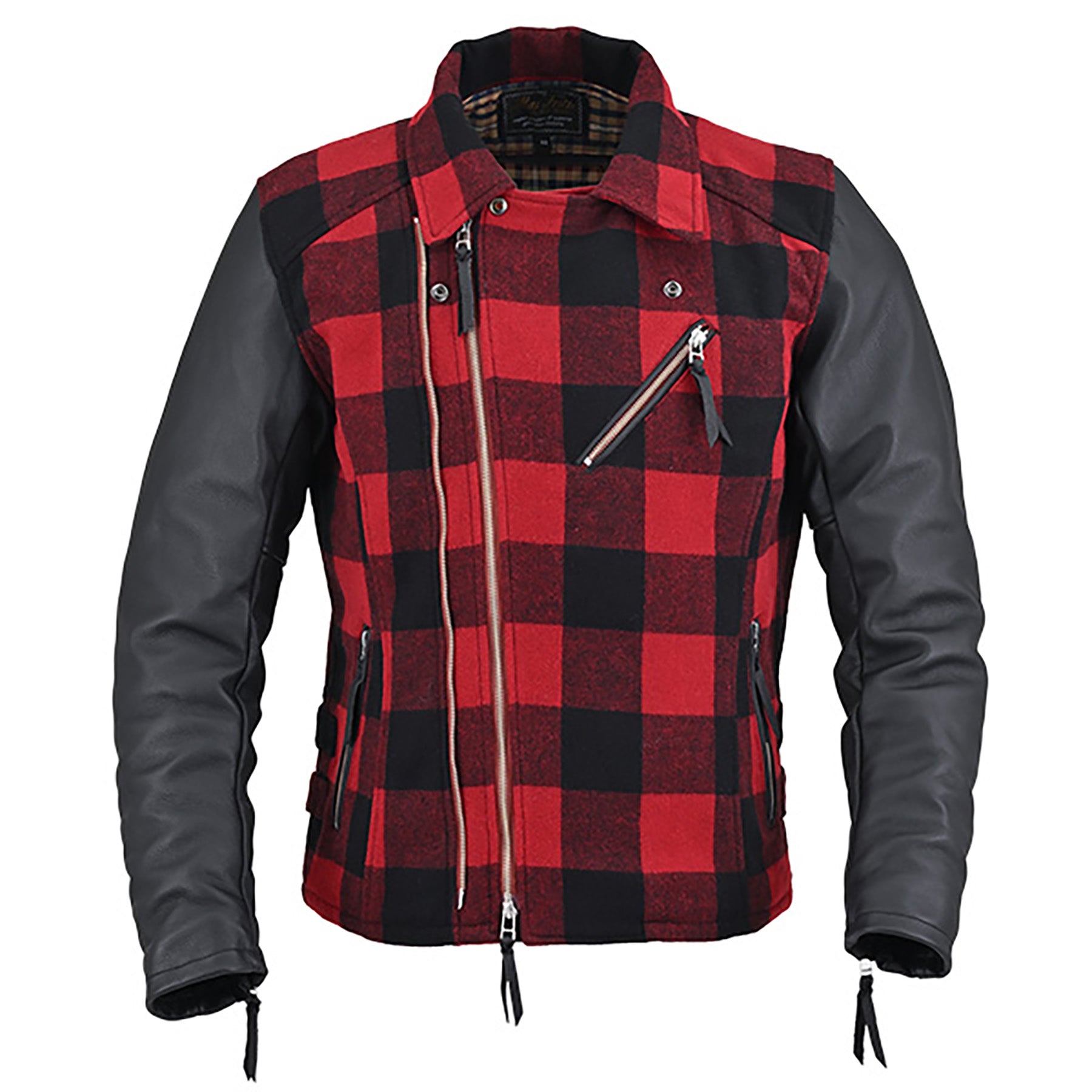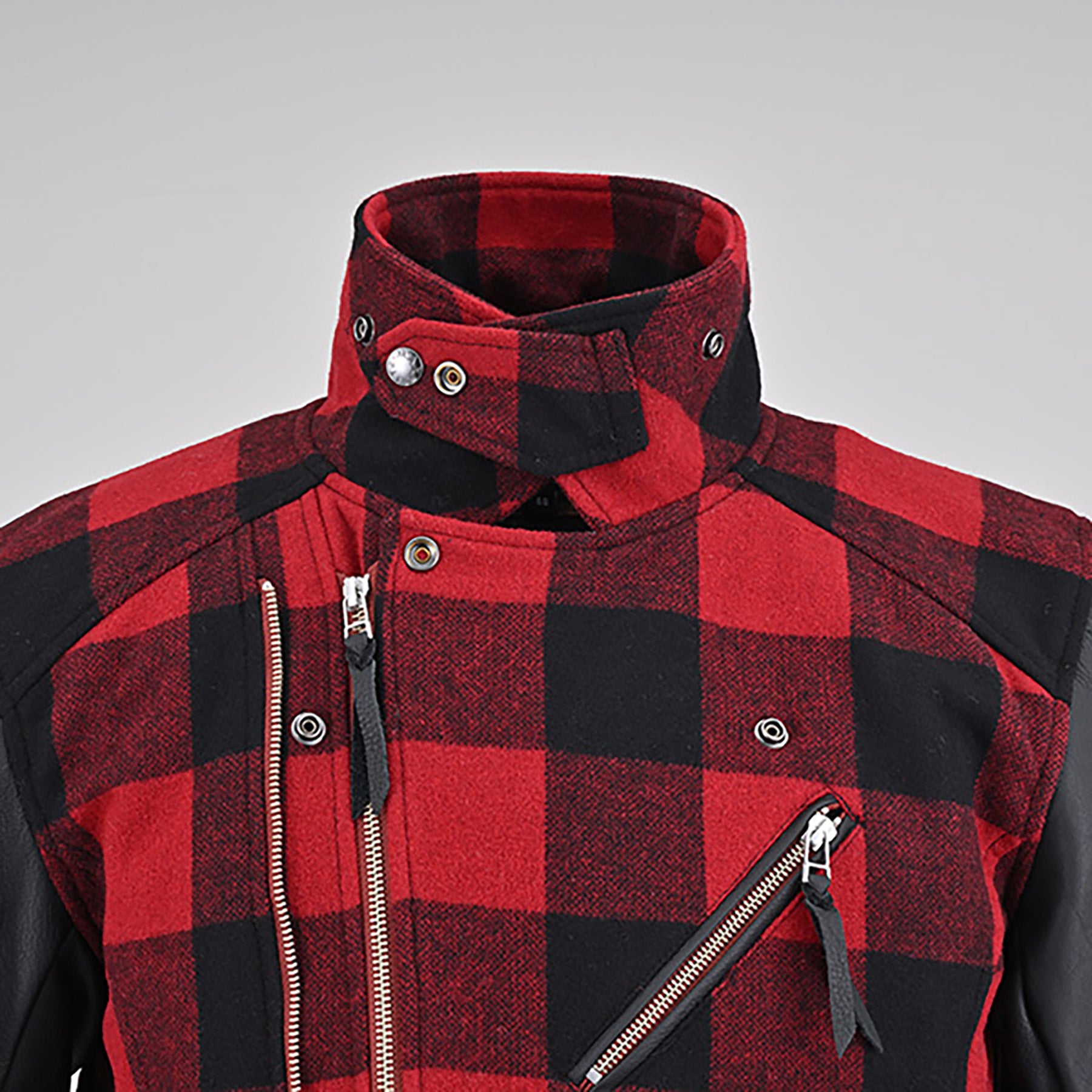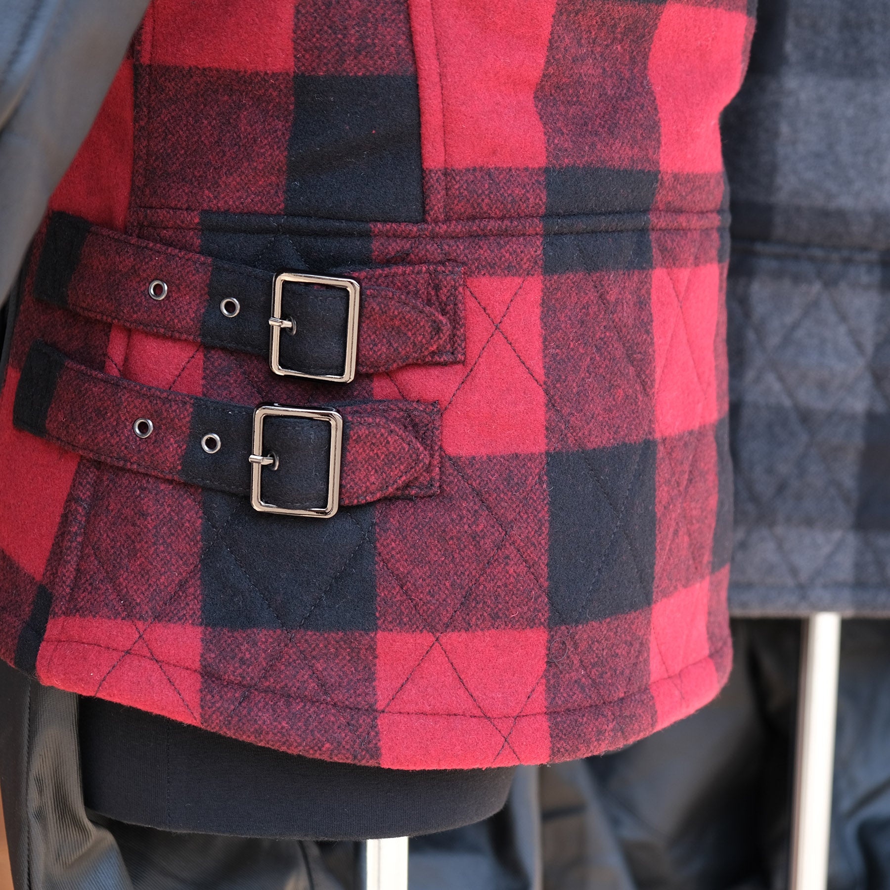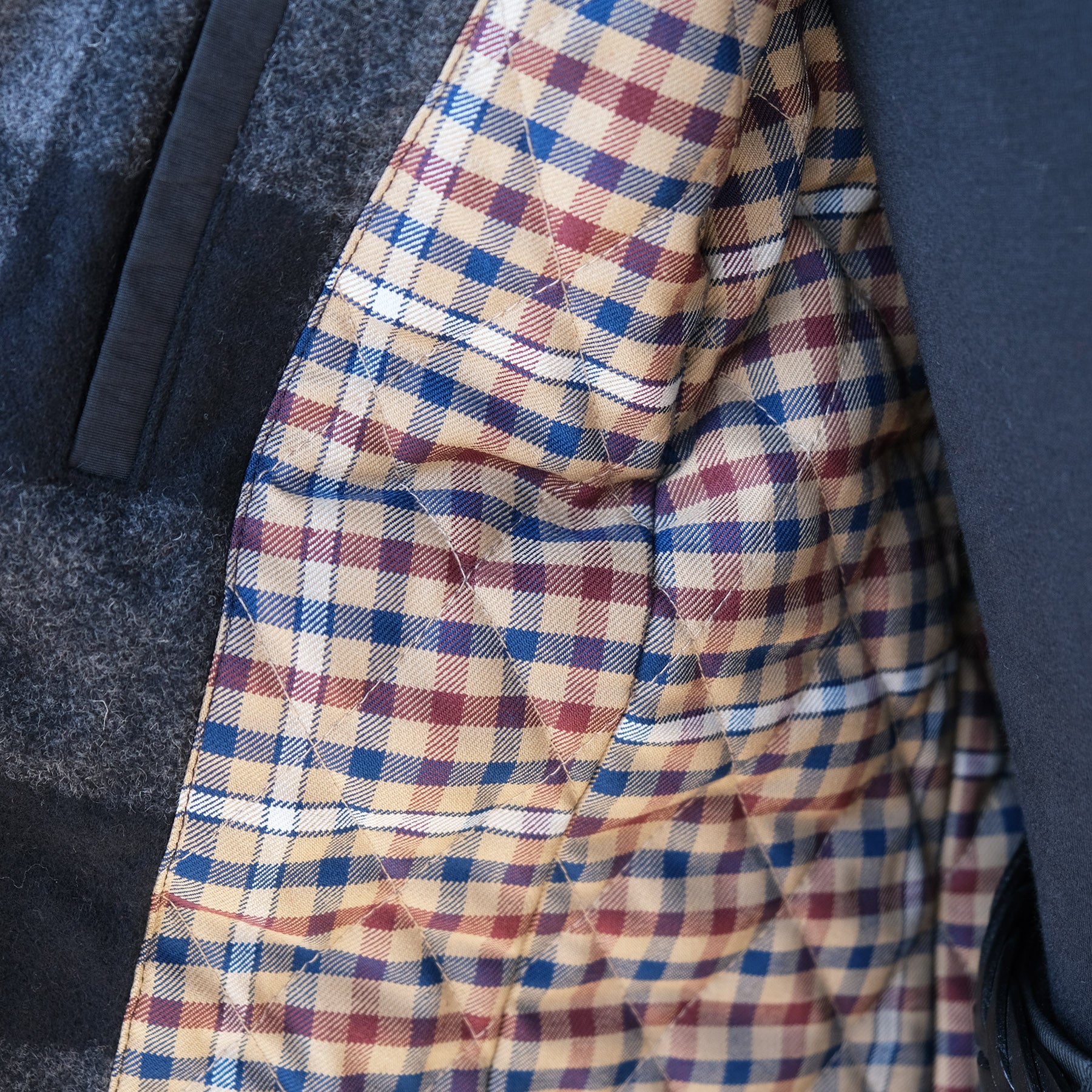 Pコートやダブルコートに使用されるようなウールメルトン生地はブロックチェック柄と相まってライダースジャケットとしては雰囲気は柔らかくなっています。