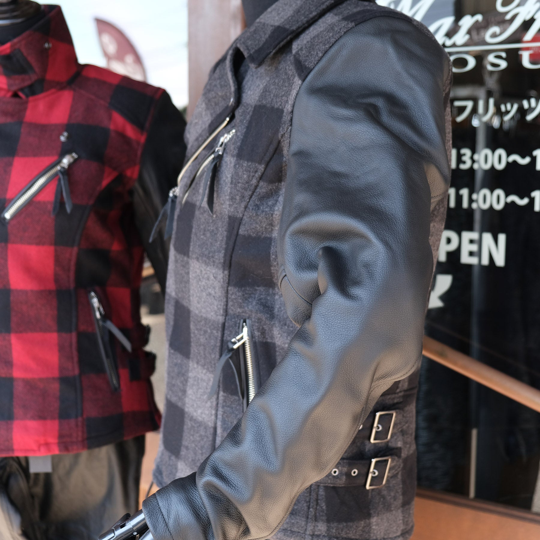 ウールとレザーのコンビネーションジャケットはMaxFritzらしいモデルの一つ。