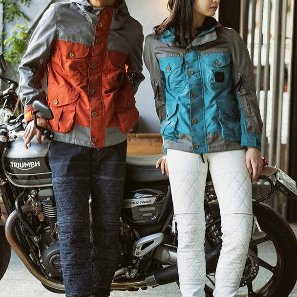 モノトーン系が多くなりがちなバイクジャケットですが、こういうカラフルなパーカーも1枚あると何かと便利です。
