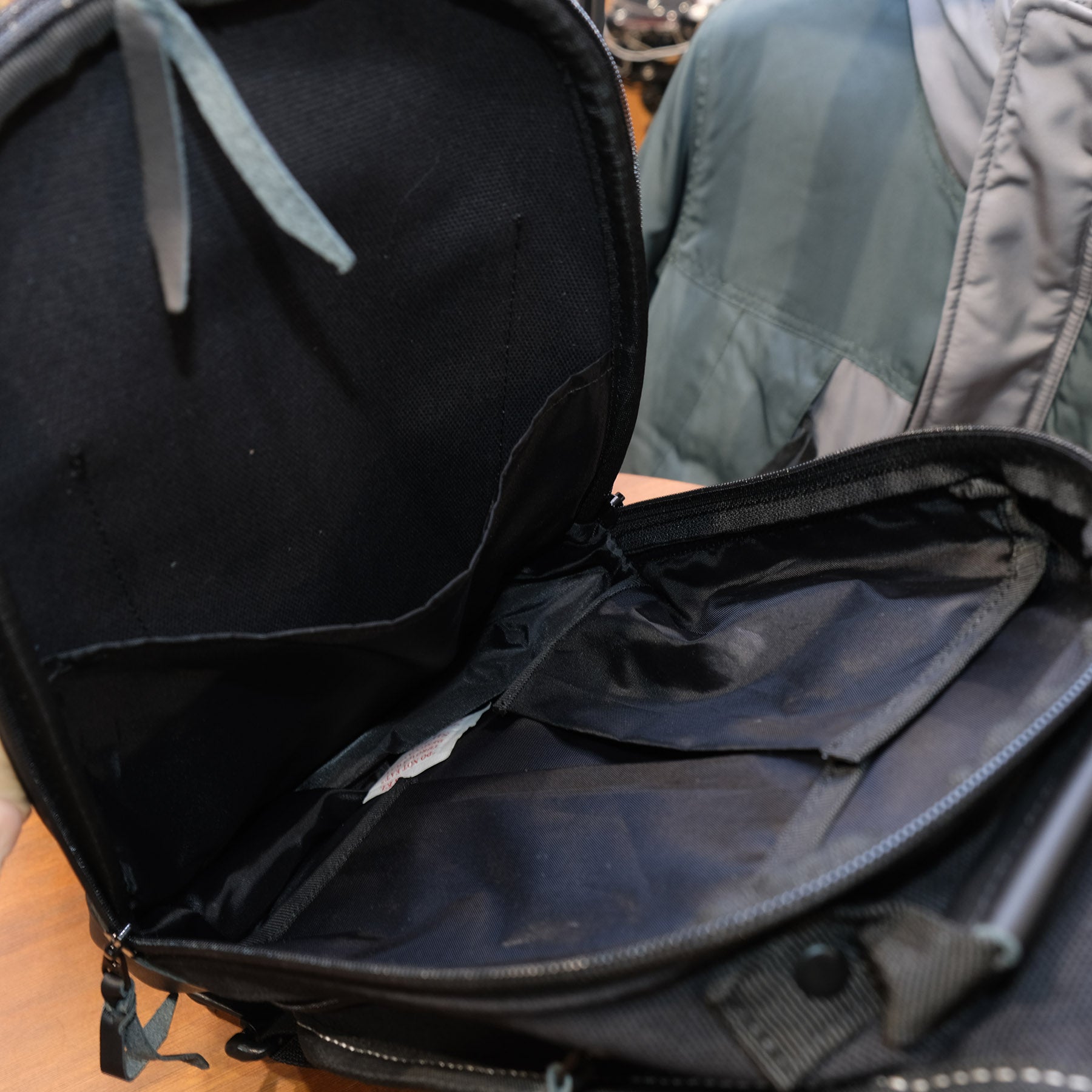 ファスナーは2段で、上のファスナーを開けるとクリアポケットがでてきましてフタ部分にはメッシュポケットが付いています。