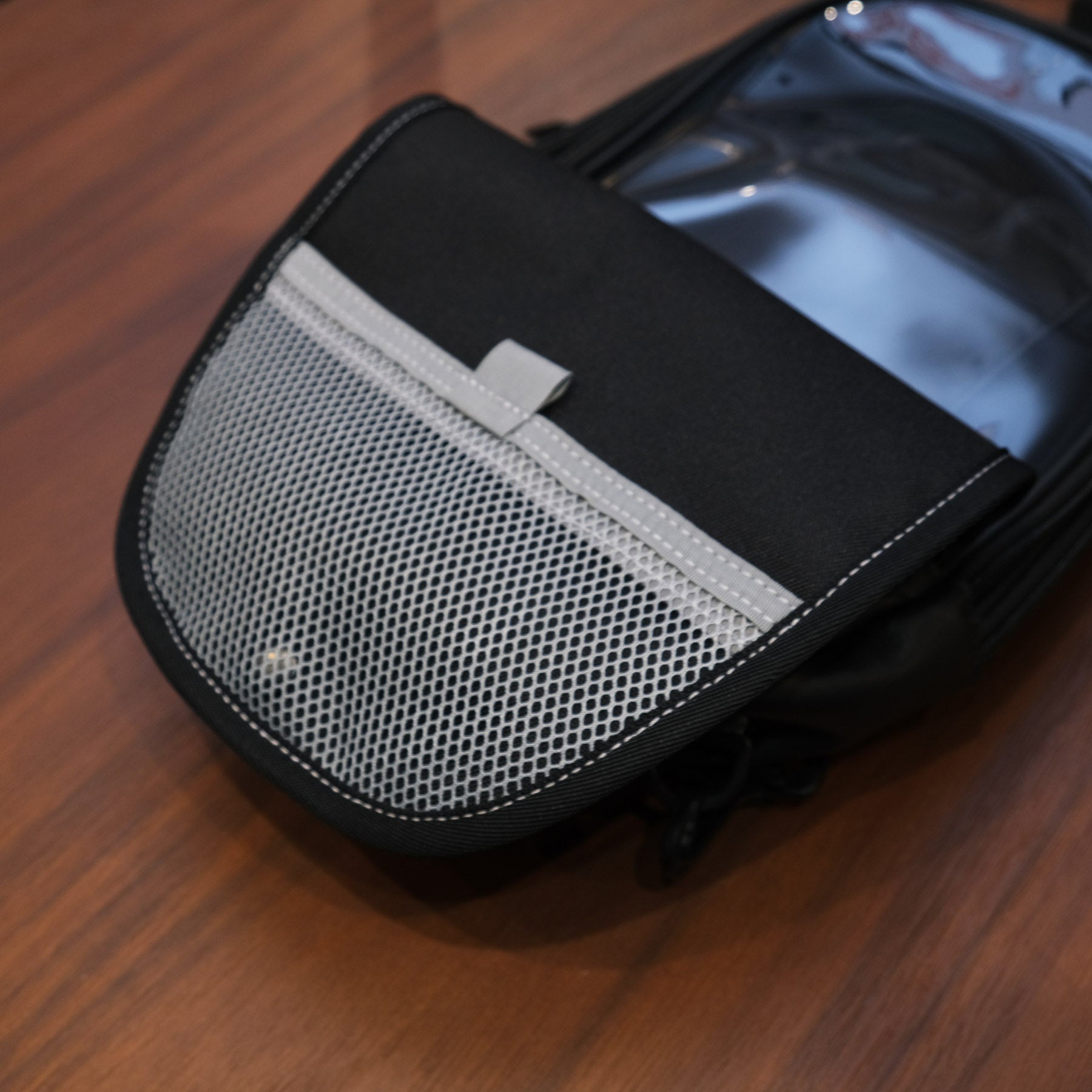メッシュポケットの口はベルクロでしっかり閉まりますので小銭入れにもなります。