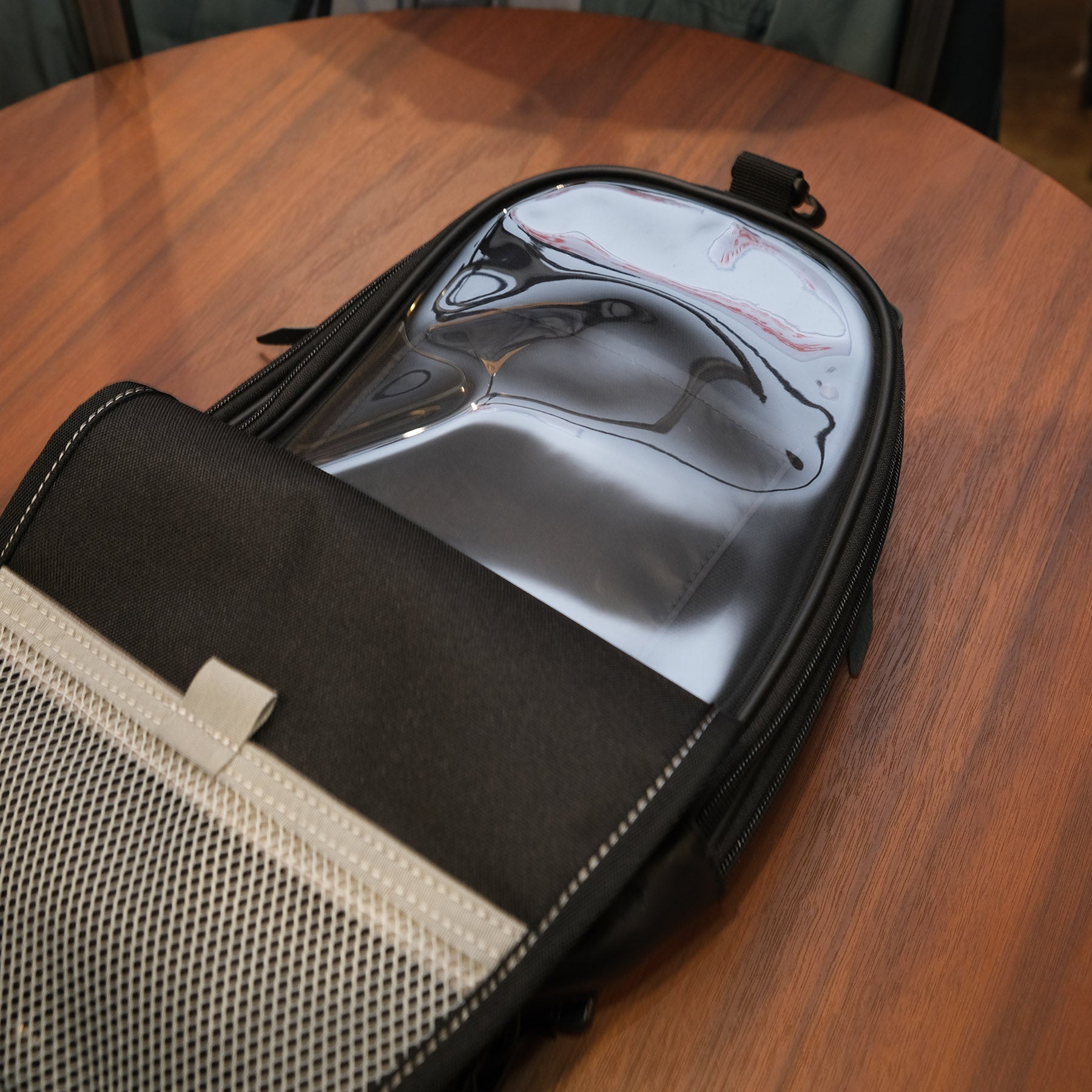 マグネット式のタンクバッグで、ストラップ付きでワンショルダーバッグにもなります。