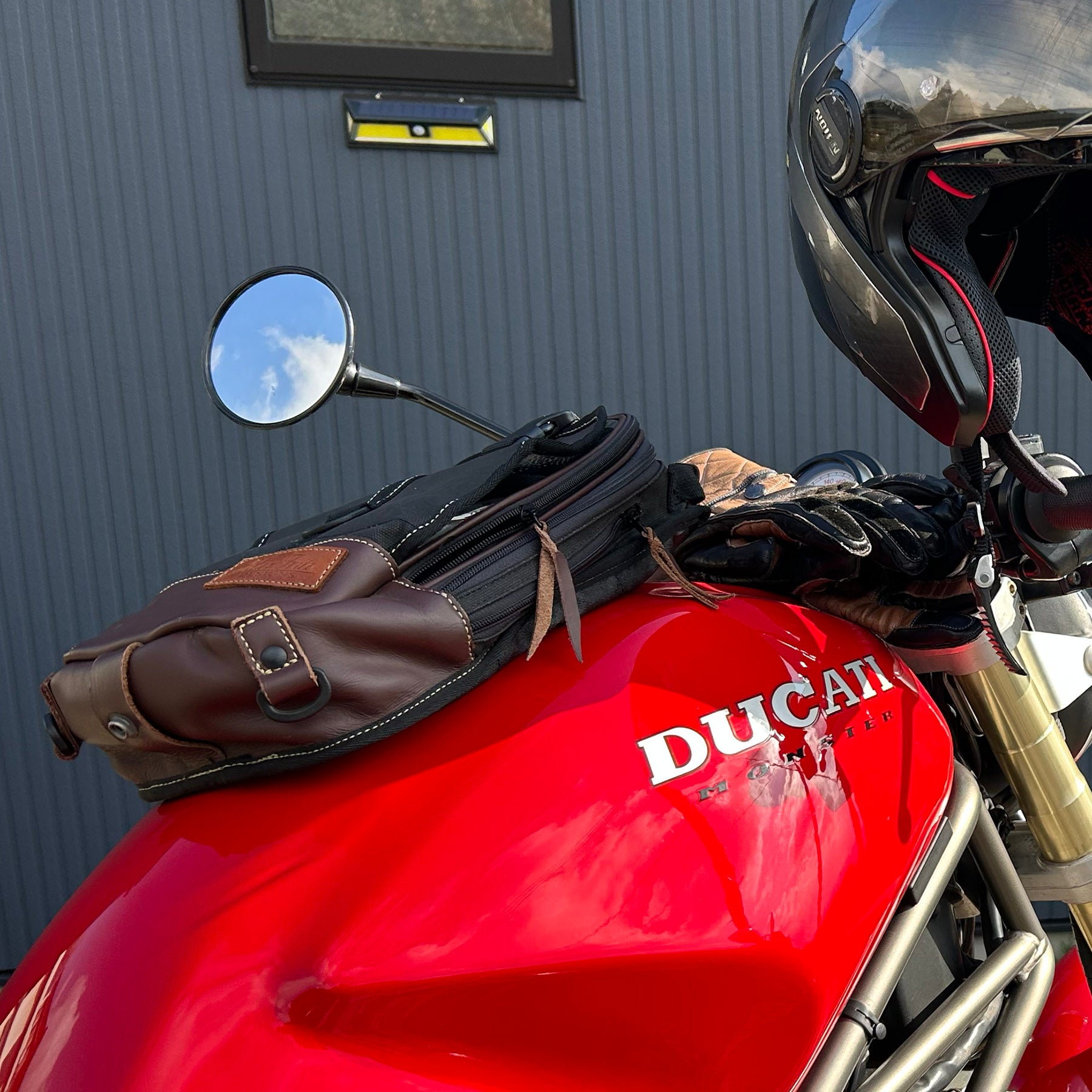 マグネットが強力なので、真夏の暑い時期に長時間つけておくとタンクのクリア層にうっすら凸凹が付く場合があります。店長のバイク(旧車や塗り直した履歴あり)では真夏にこの現象が起こったことがあります。