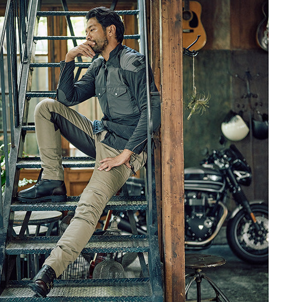 シンプルなデザインは着回ししやすく、バイク用じゃない普段着のジャケットと合わせて着ても違和感なさそうです。