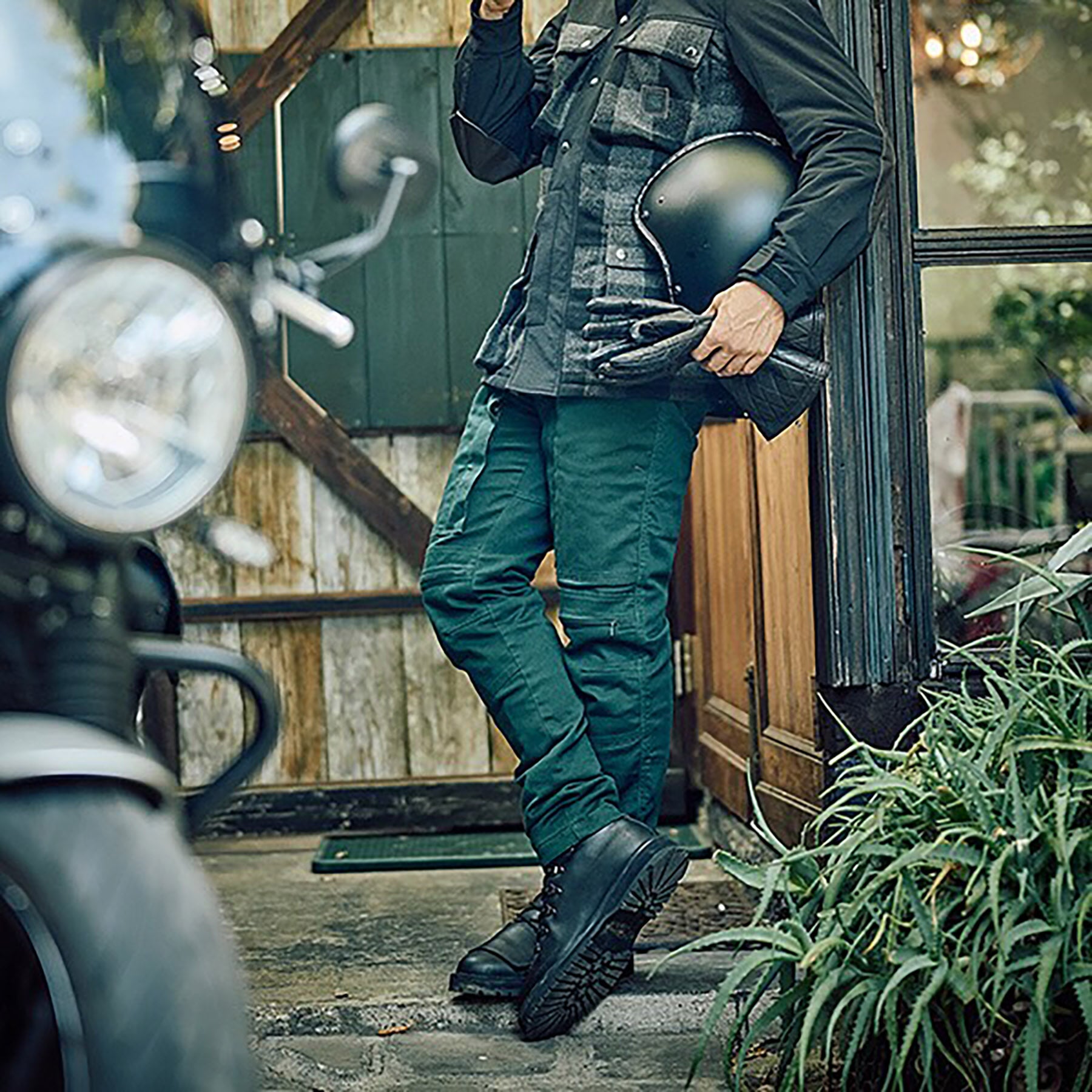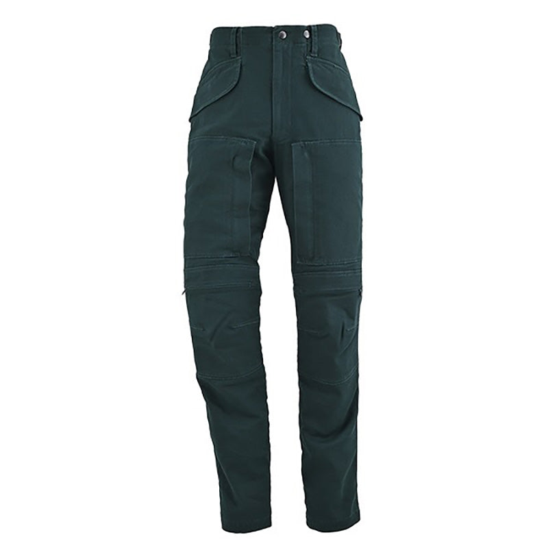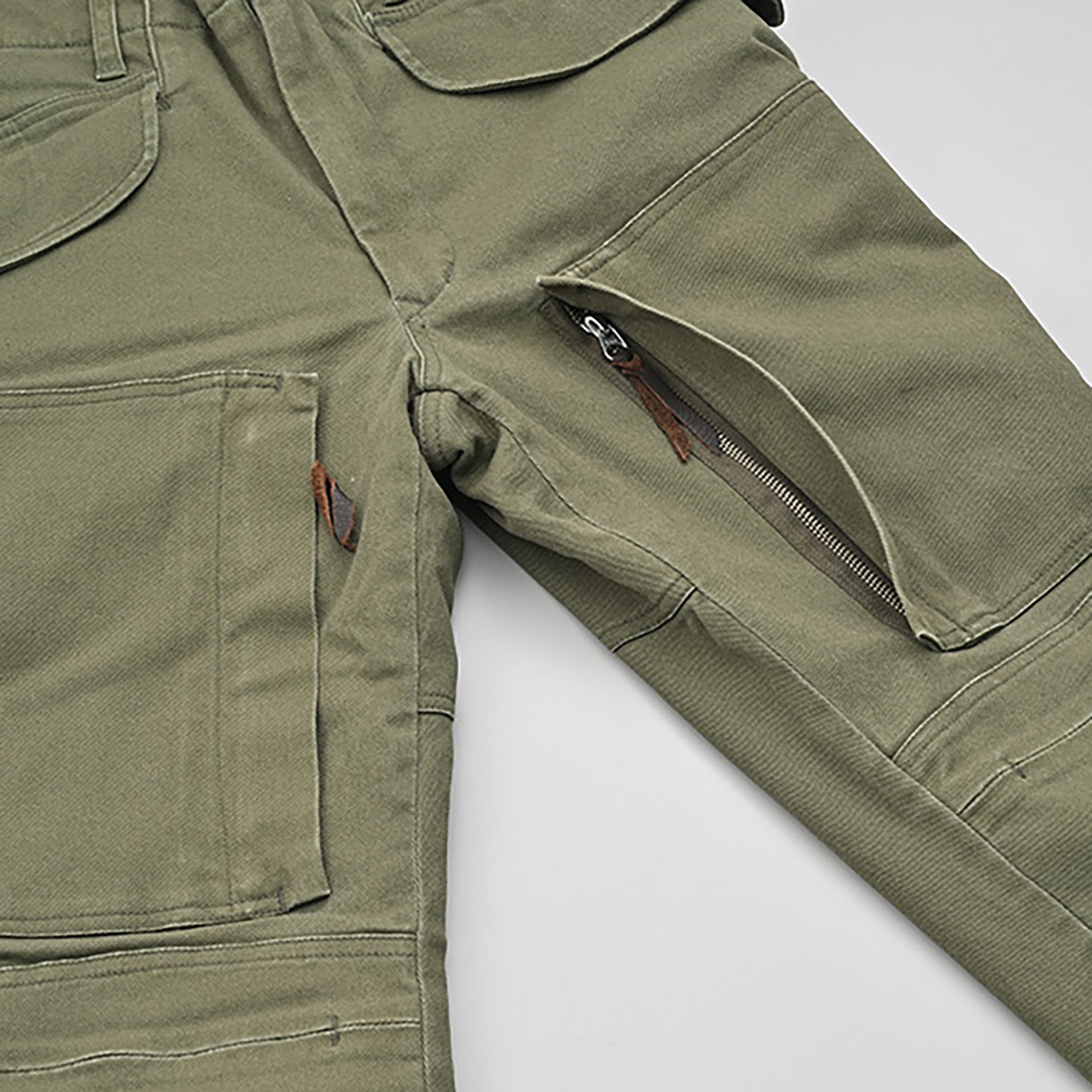 太もも前面についた大きなポケットは内股部分に縦のファスナーがついており、乗車姿勢でもポケットが使用しやすくなっております。